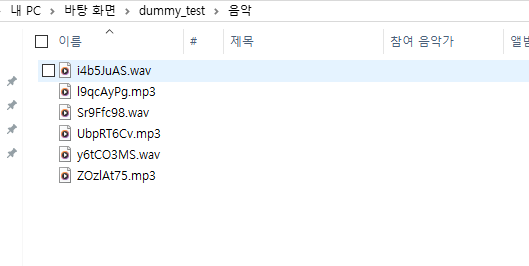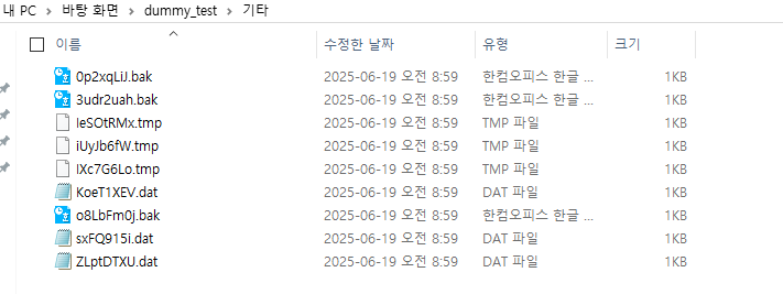 위 코드를 실행하면 다양한 파일이 담긴 dummy_test 폴더가 생성됩니다.